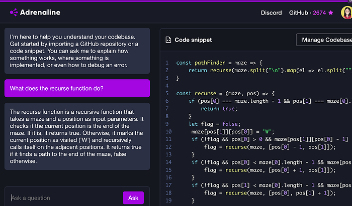 Adrenalin AI kod tabanınızı anlamanıza yardımcı olur. Araç, özelliklerin nasıl çalıştığını netleştirmek ve bununla ilgili her şeyi size açıklamak için statik analizden, vektör aramasından ve gelişmiş dil modellerinden yararlanır.